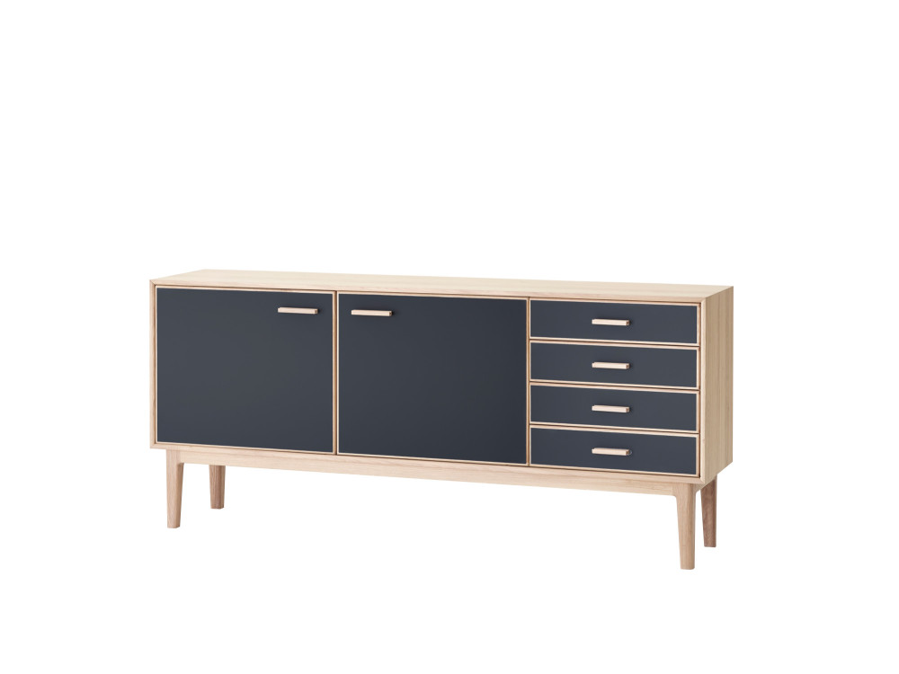 Denne skjenken representerer denne visjonen med to tredører og fire skuffer. Velg mellom tre eller svart NANO-laminat til frontene.