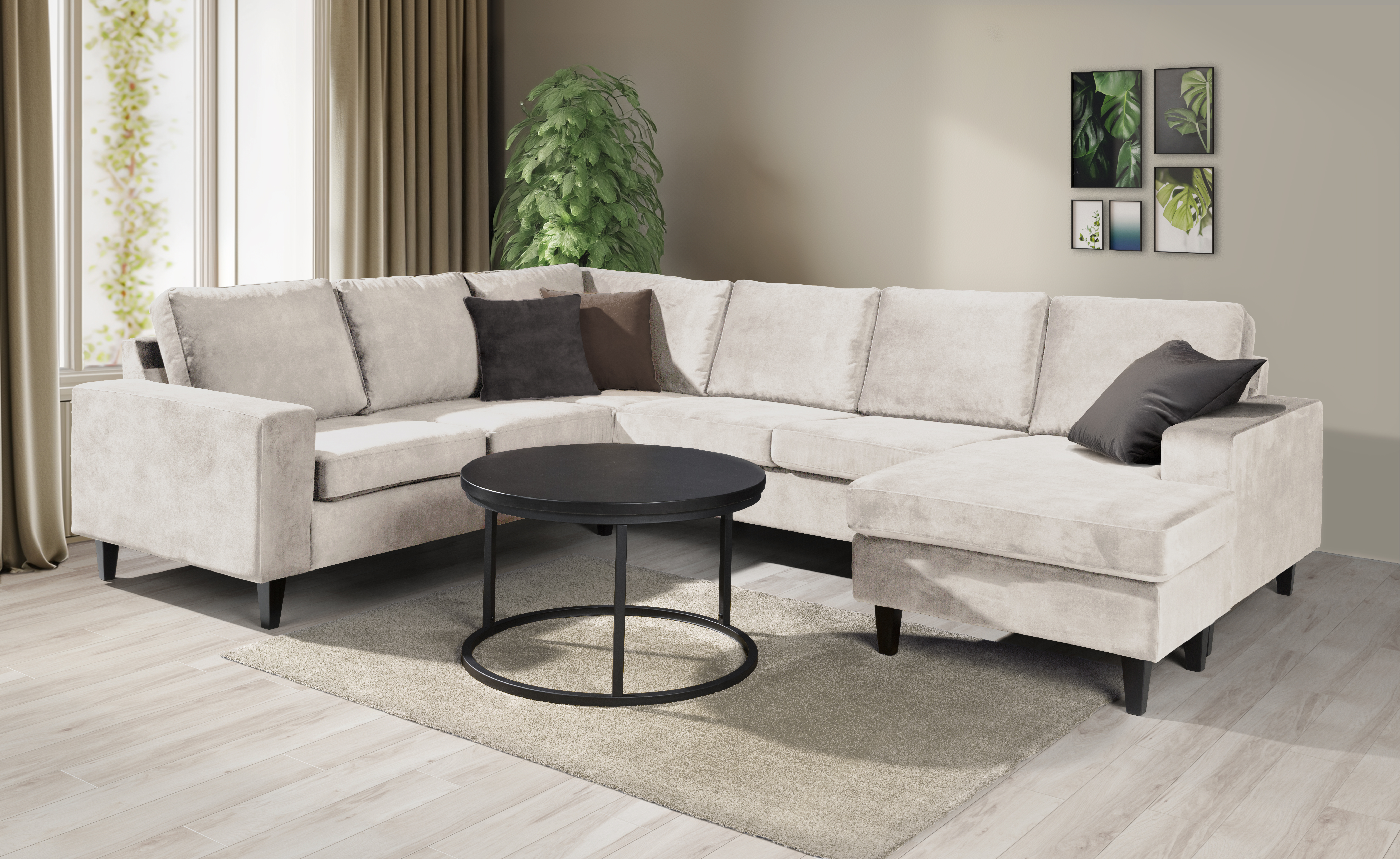 Milano hjørnesofa har et klassisk og tidløst design. Alle puter er vendbare med unntak av sjeselongputen. Hjørnesofaen leveres også speilvendt.