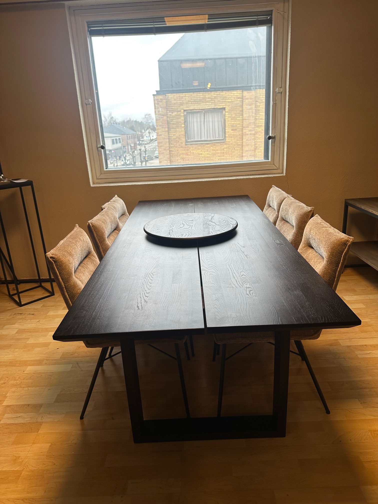 Munin spisebord 220×100 svartlakkert med treunderstell. Utstillingsmodell – selges som det står.